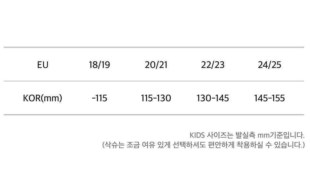 *삭슈즈는 조금 여유 있게 선택하셔도 괜찮습니다.