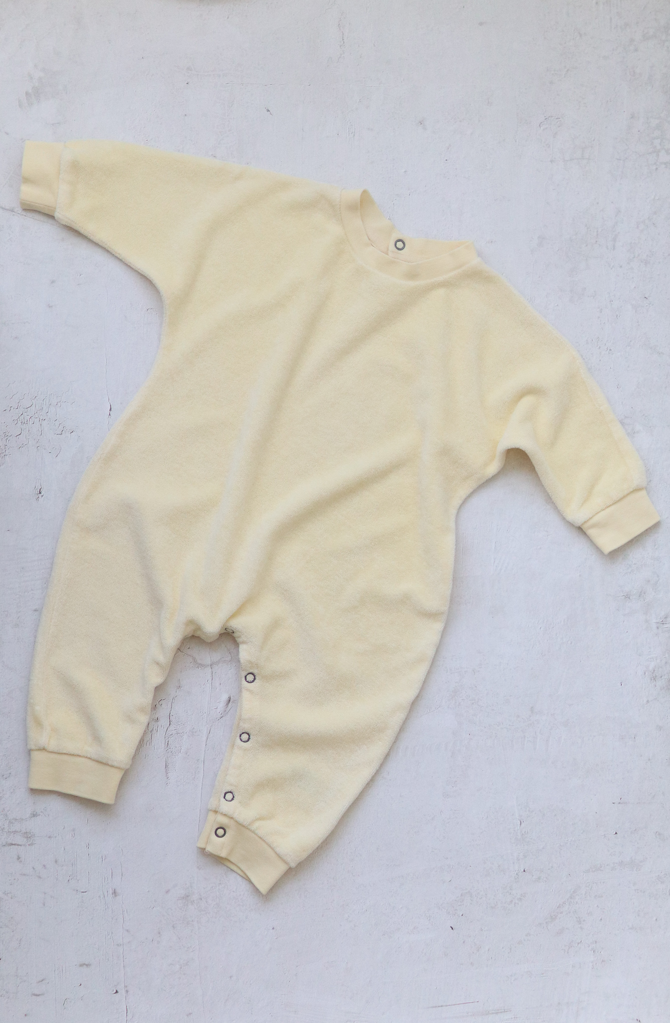 타올의 표면과 같은 루프테리 원단은 봄 철 한 겹만 입어도 괜찮을 포근한 중량감입니다.