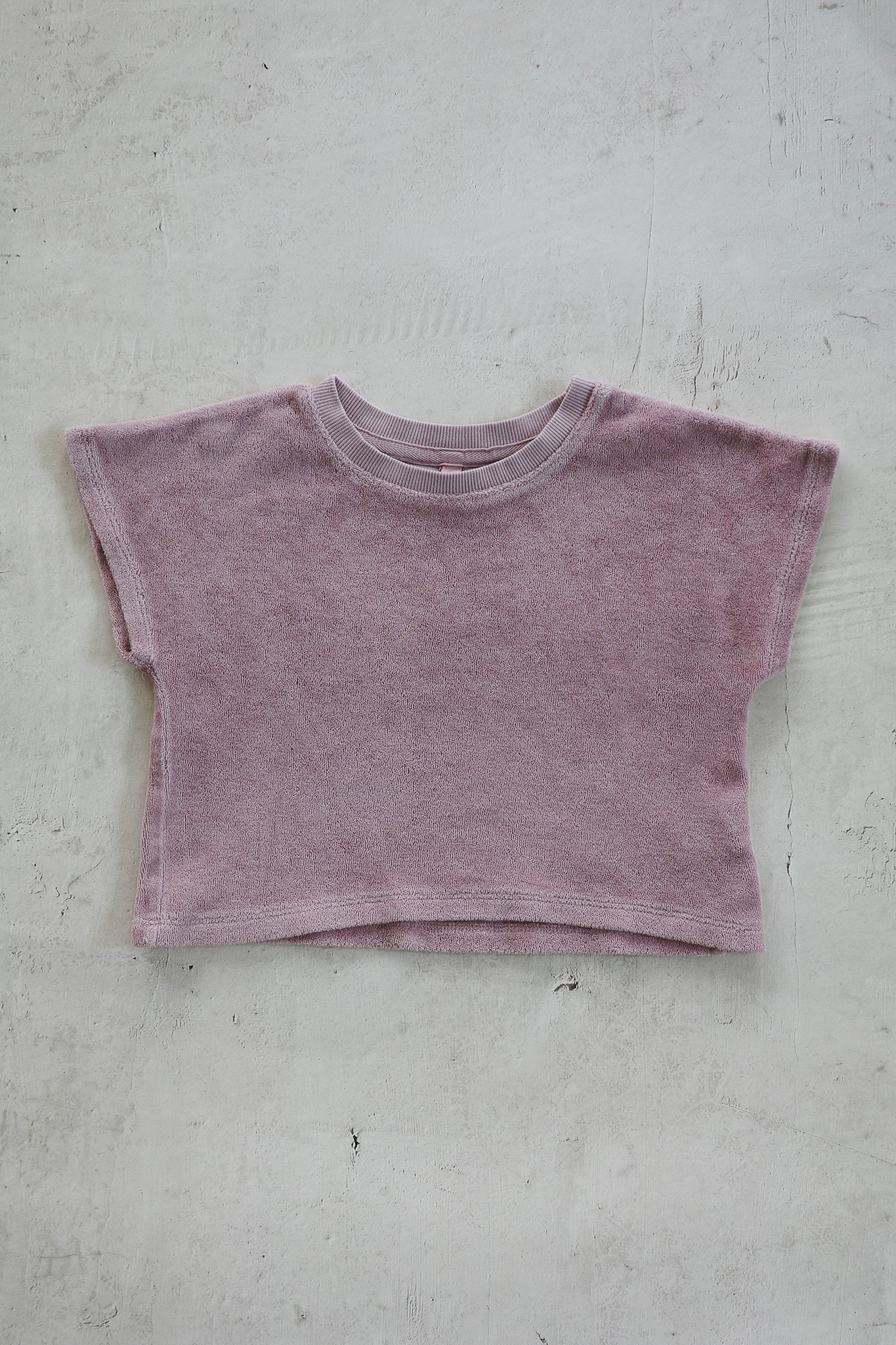 소매시접이 없이 한판으로 떨어지는 여름 스웻셔츠입니다. 가슴폭은 넓고 기장은 짧게해서 쇼츠와 세트로 입었을 때 귀여운 룩을 완성합니다. 립원단을 사용해 두꺼운 너비의 넥밴드를 달아 디자인의 포인트를 더했습니다.