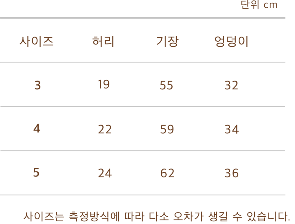 Size guide 3 (2-3세) / 4 (3-4세) / 5 (4-5세)