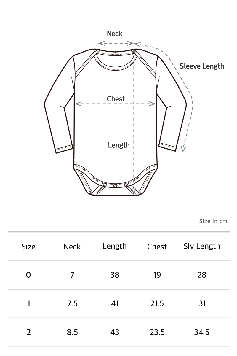 목을 가누지 못하는 아기는 특히 머리 위로 옷을 입히고 벗기는 것이 어렵습니다. 어깨에서 교차되는 넓은 입술넥 스타일로 머리가 끼지 않고 쉽게 입히고 벗길 수 있도록 제작했습니다. 소매에는 얇은 바인딩을 둘러 손목을 가볍게 잡아줍니다.