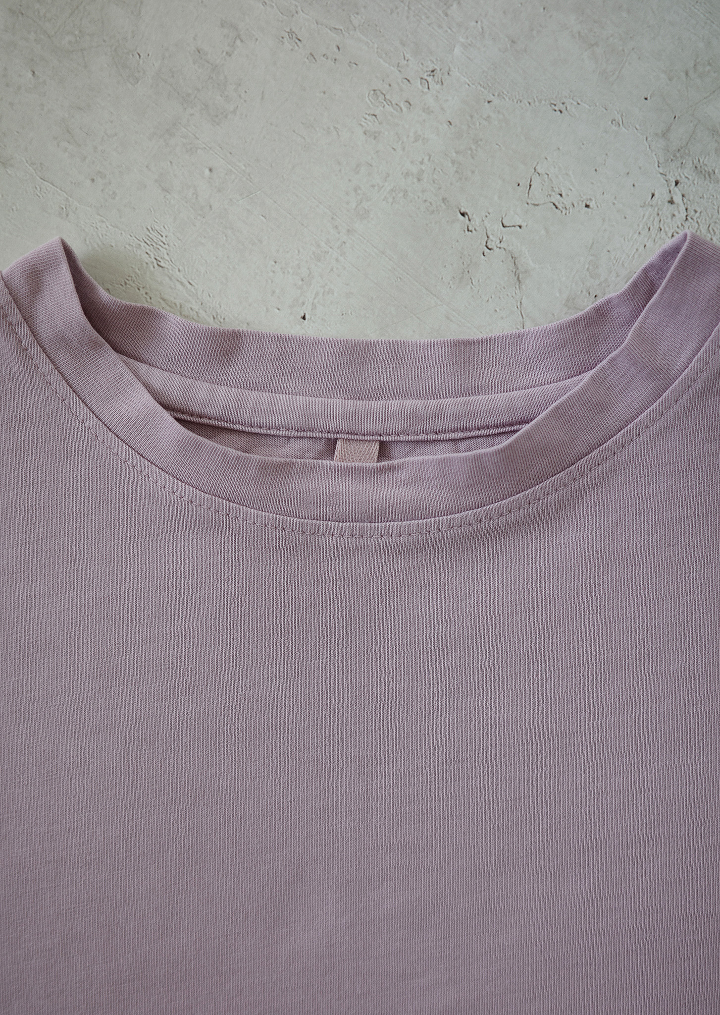 EARTH에서 추구하는 가먼트다잉기법은 봉제가 완성된 상태의 옷을 염색하는 방법으로 원단 염색에 비해 사용되는 물의 양을 절약하여 자원을 아낄 수 있고, 색감이 부드럽고 제품에 고급스러운 빈티지한 효과를 더해줍니다.