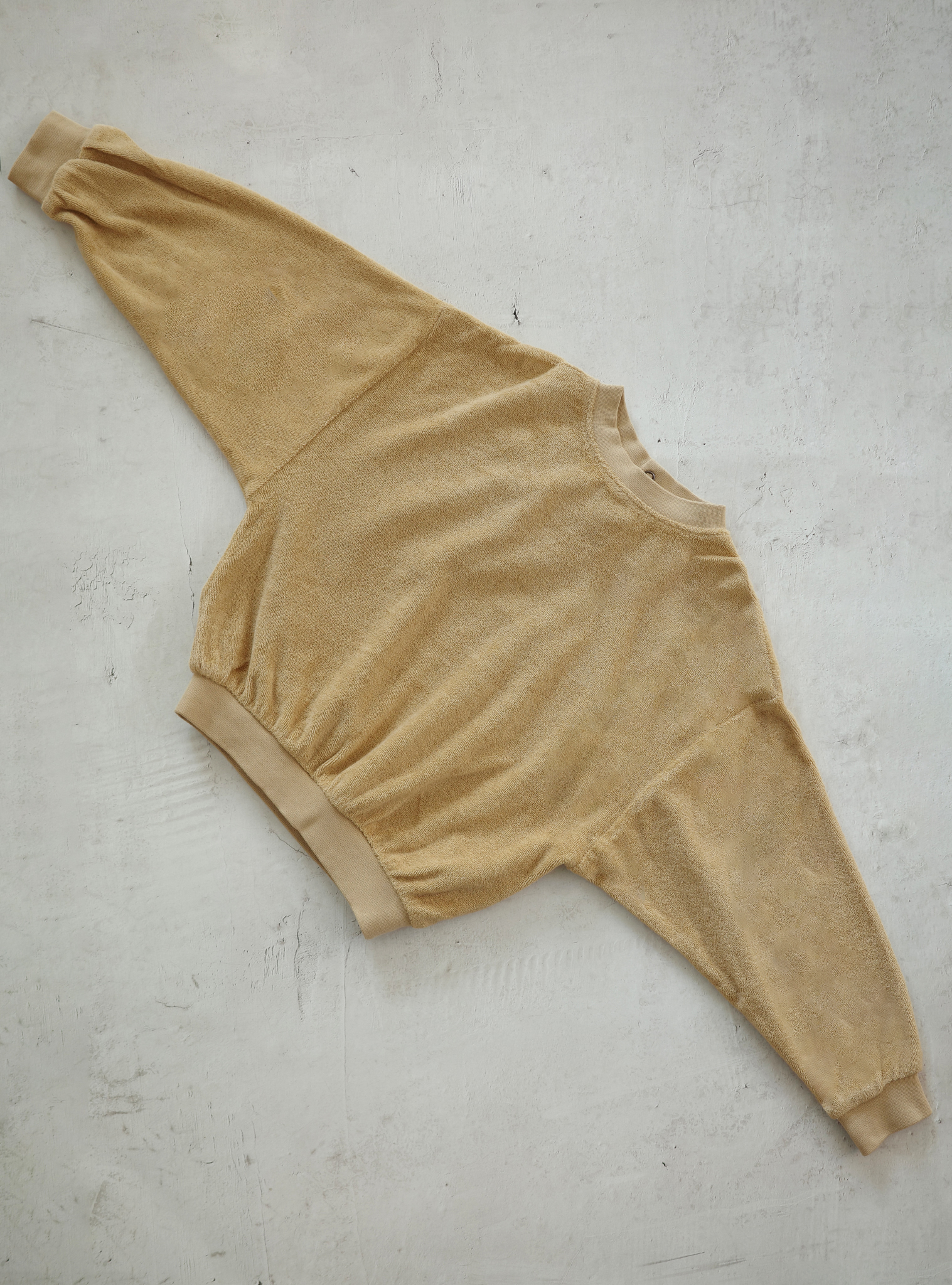 EARTH에서 추구하는 가먼트다잉기법은 봉제가 완성된 상태의 옷을 염색하는 방법으로 원단 염색에 비해 사용되는 물의 양을 절약하여 자원을 아낄 수 있고, 색감이 부드럽고 제품에 고급스러운 빈티지한 효과를 더해줍니다.